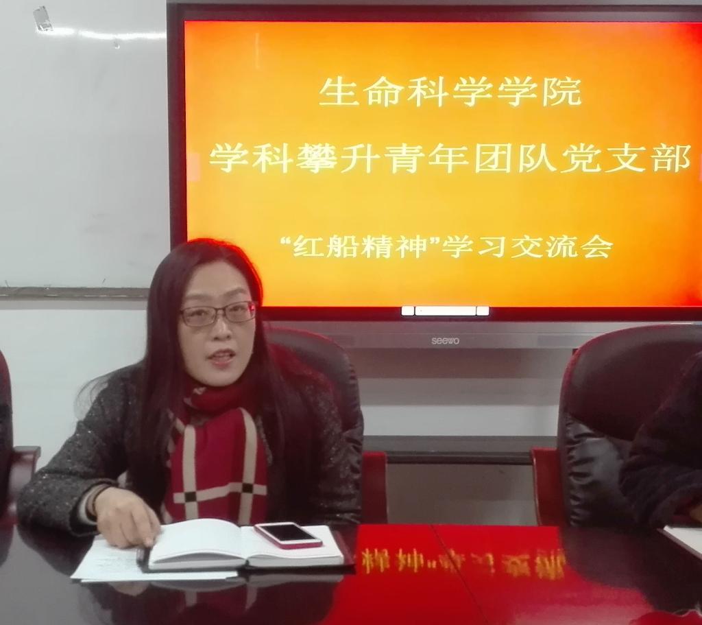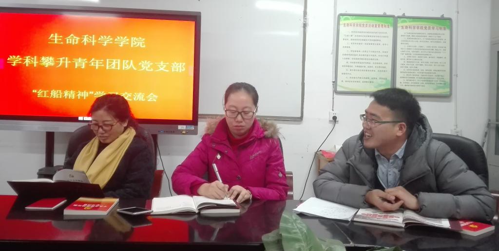 2018年1月3日,生命科学学院学科攀升青年团队党支部在3号楼3层会议室召开了“红船精神”学习交流会,会议由党支部书记王祎玲副院长主持,全体党员参会交流。