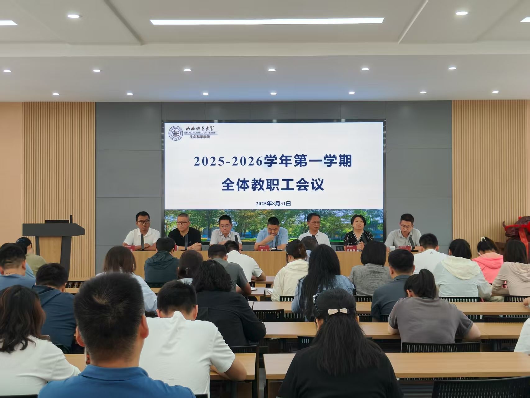 为保障新学期伊始各项工作平稳进行,8月31日,我院于北区1号办公楼403报告厅组织召开了2025-2026学年第一学期全体教职工会议,会议由党委书记郭飞同志主持,我院全体教职工参加。