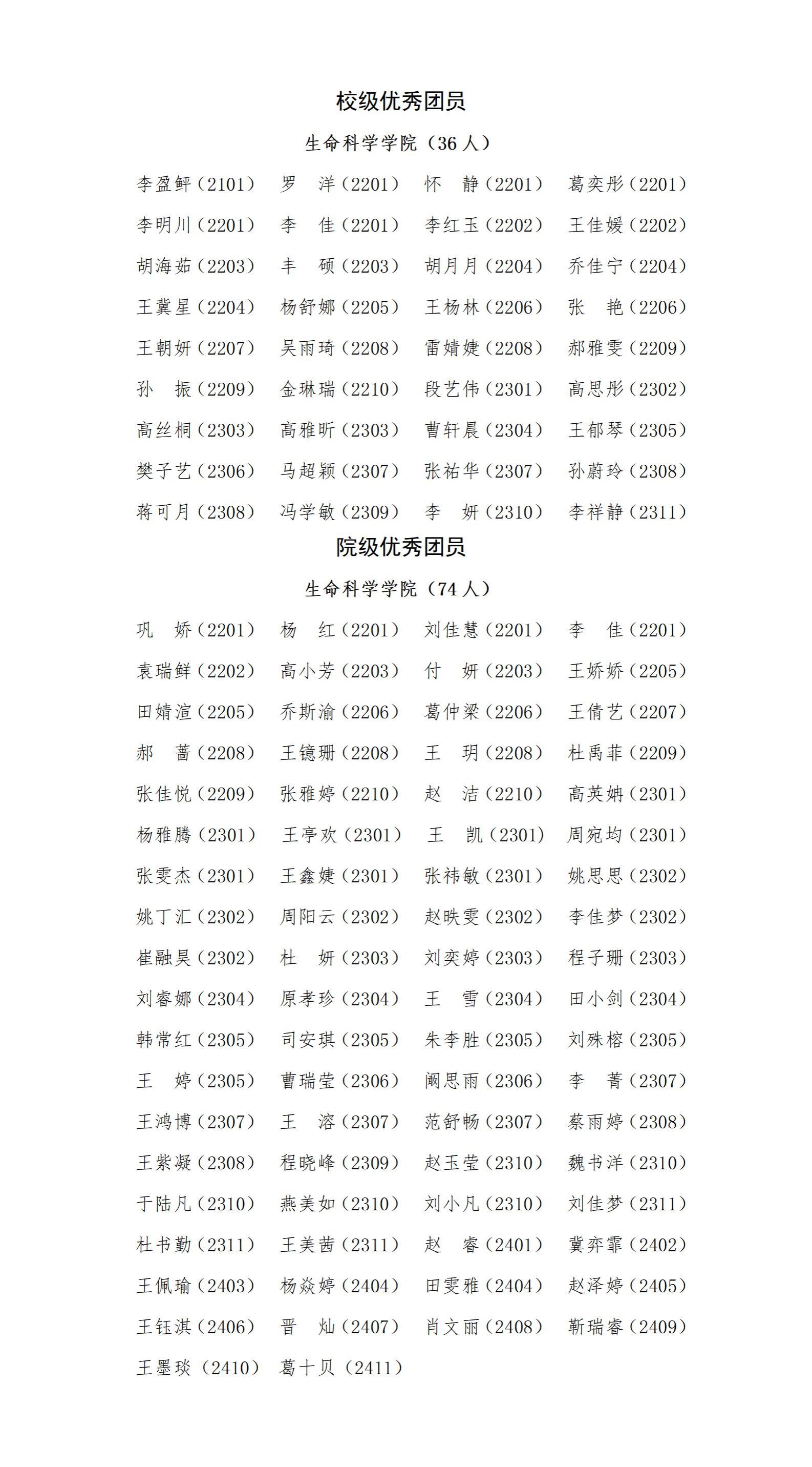 我院五四评优校级、院级优秀团员公示名单
